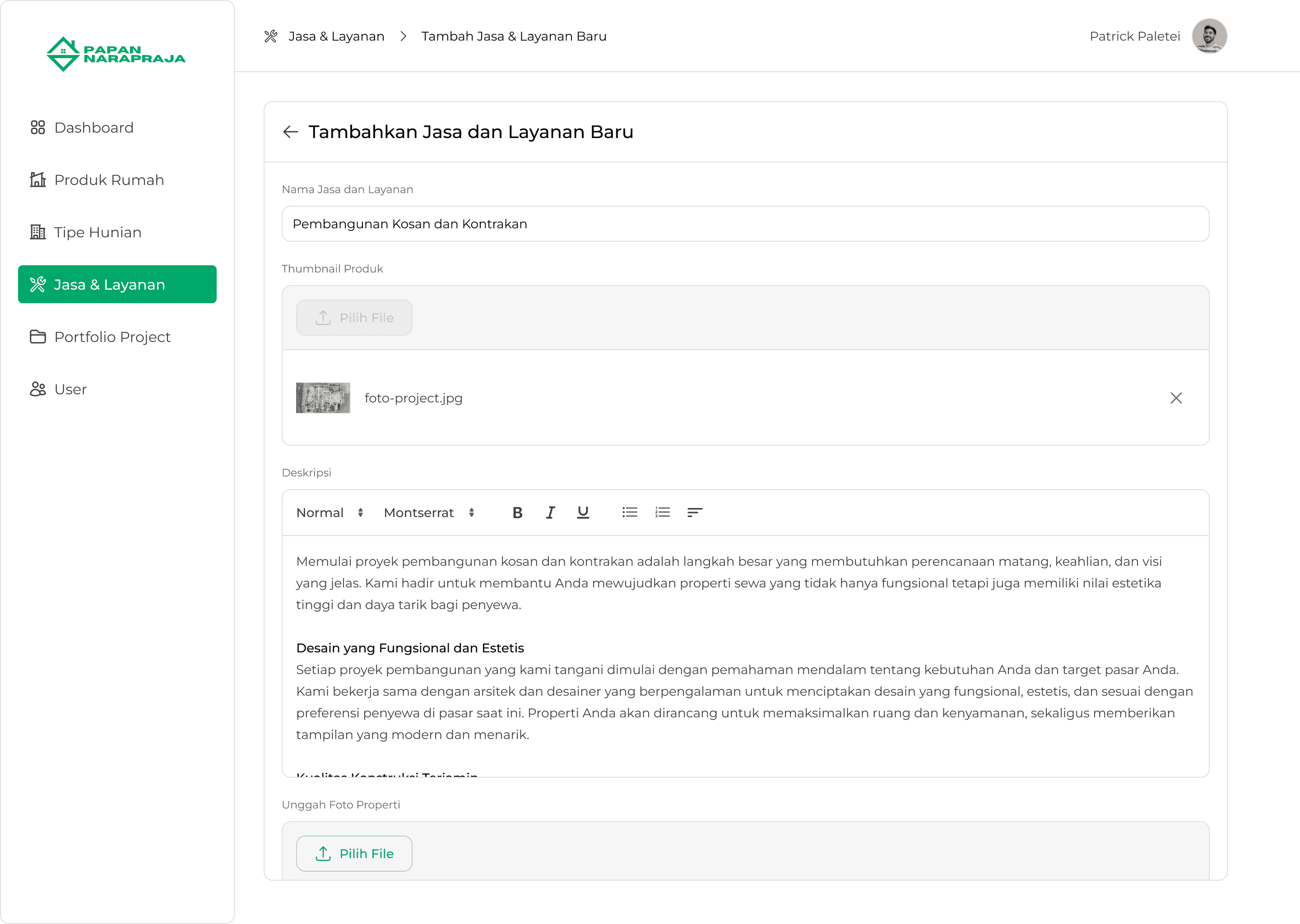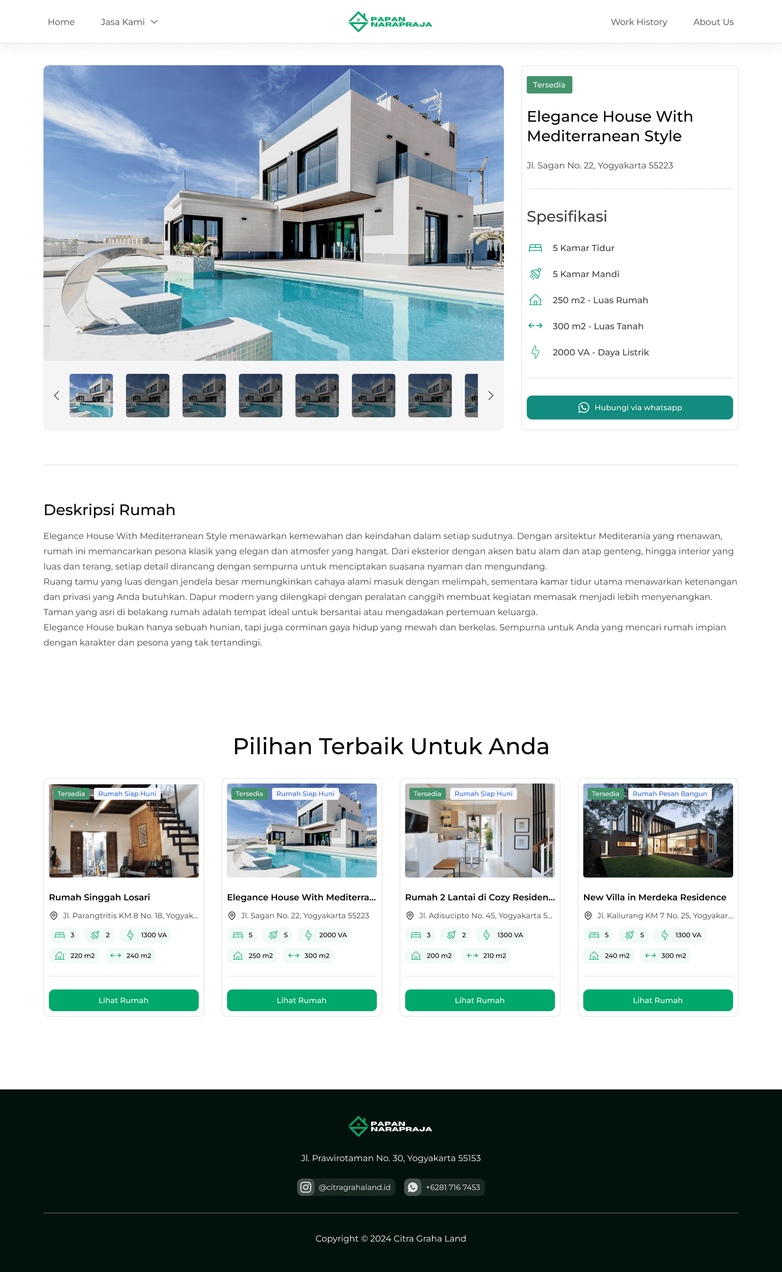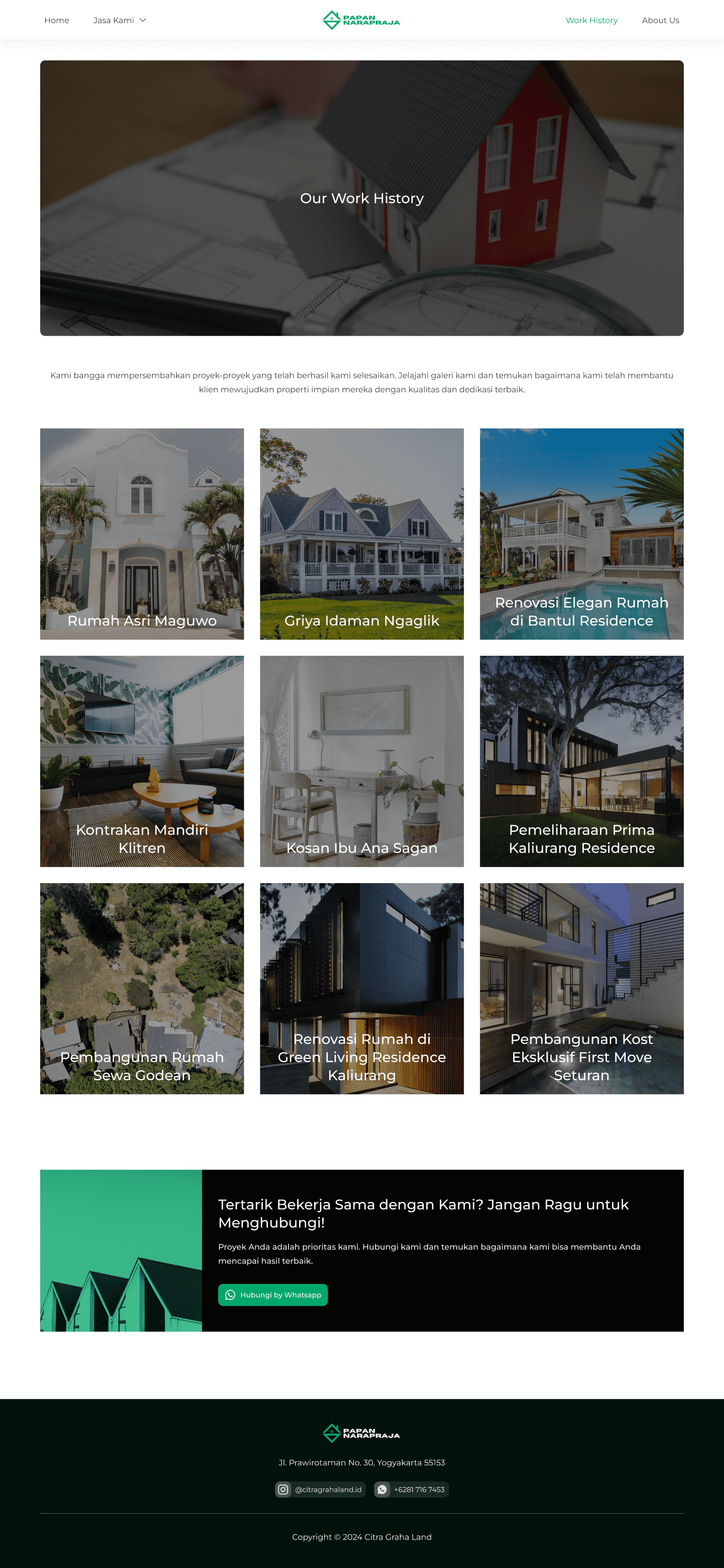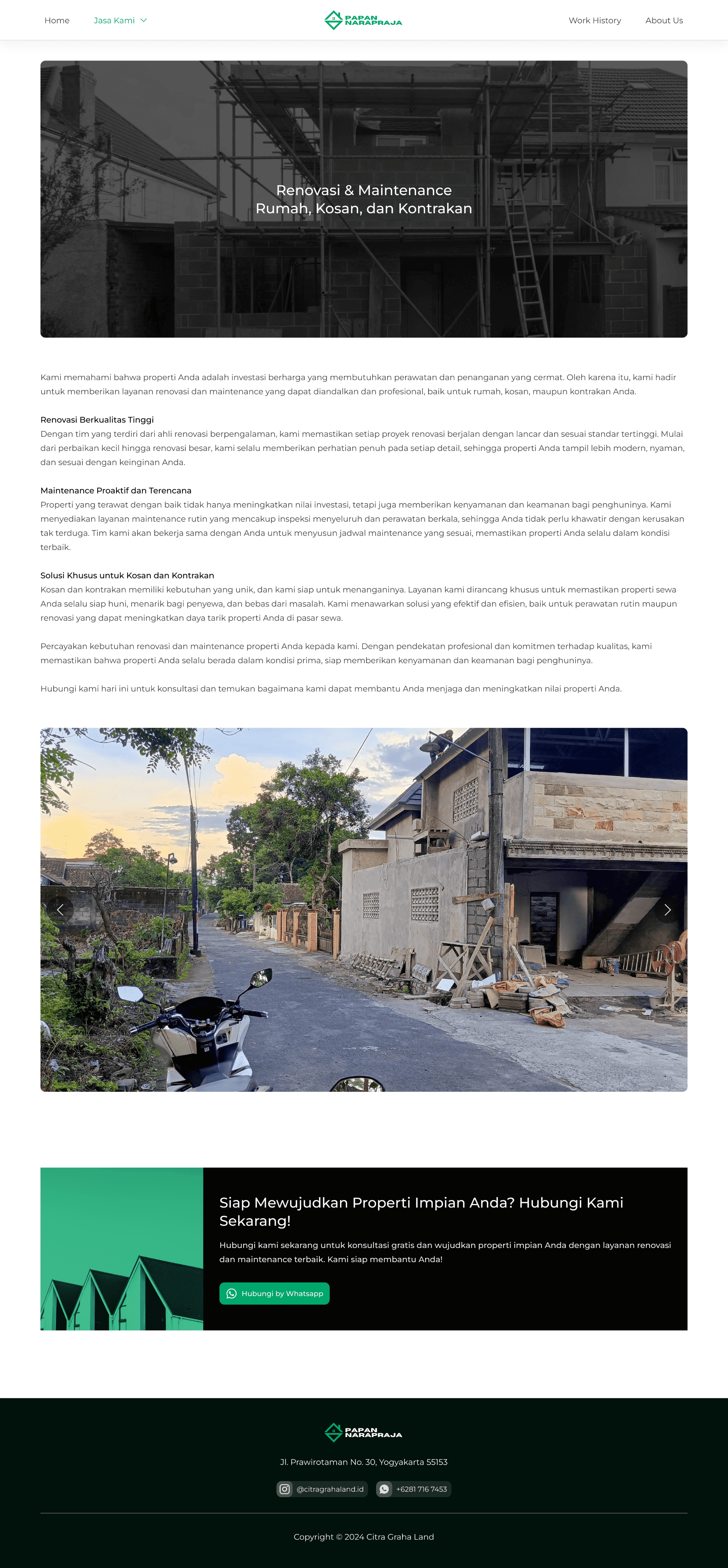 Papan Narapraja is a property company based in Yogyakarta, Indonesia, with over 18 years of experience in the industry. Specializing in property sales, Papan Narapraja offers a wide range of services, including the sale of ready-to-occupy homes and custom-built houses. In addition to property sales, the company also provides comprehensive construction and renovation services for residential properties, boarding houses, and rental units.